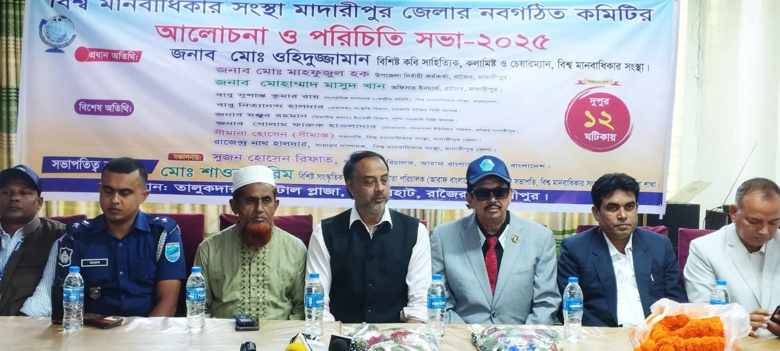 মাদারীপুরের রাজৈরে বিশ্ব মানবাধিকার সংস্থার নবগঠিত জেলা কমিটির পরিচিতি ও আলোচনা সভা অনুষ্ঠিত